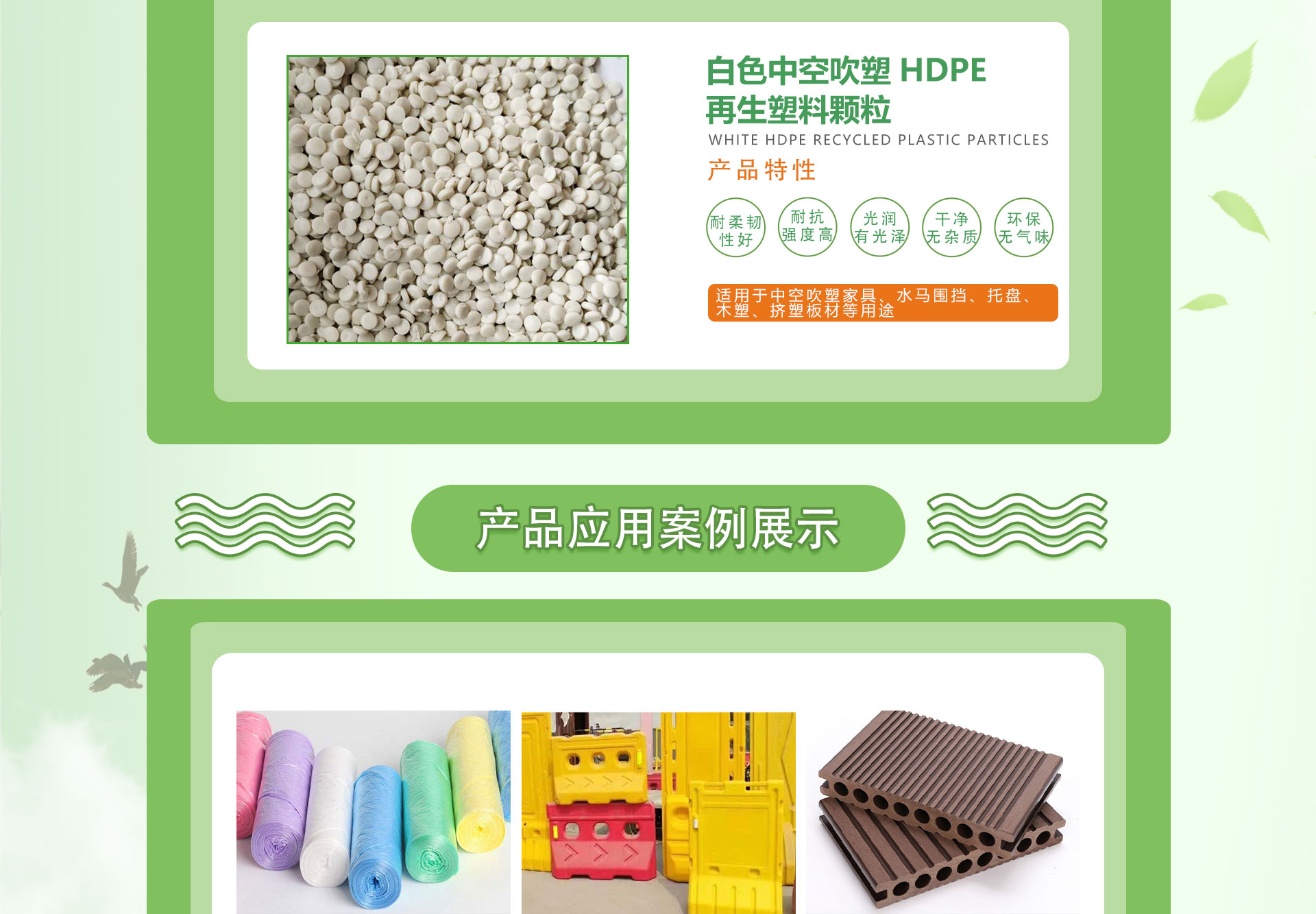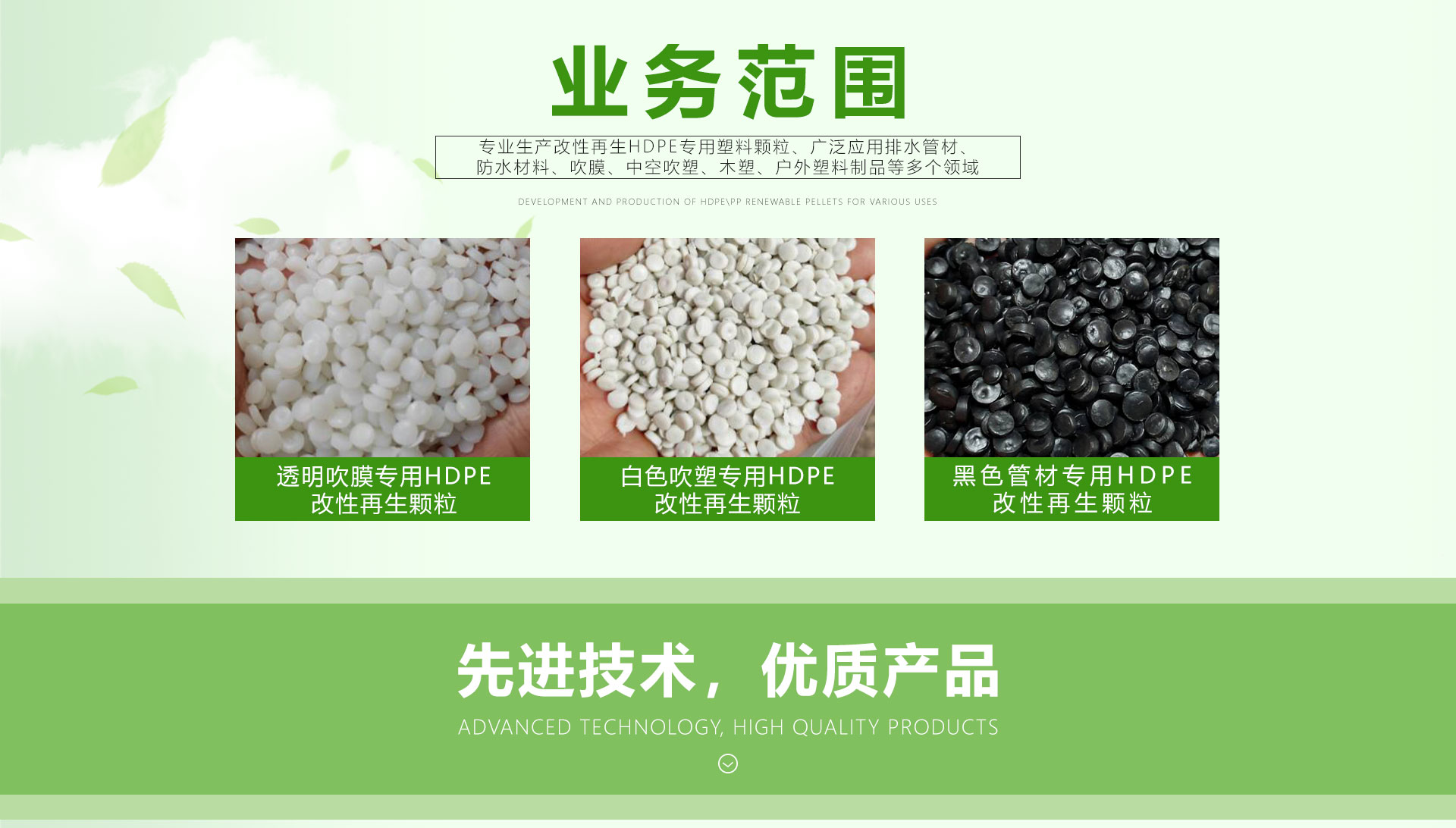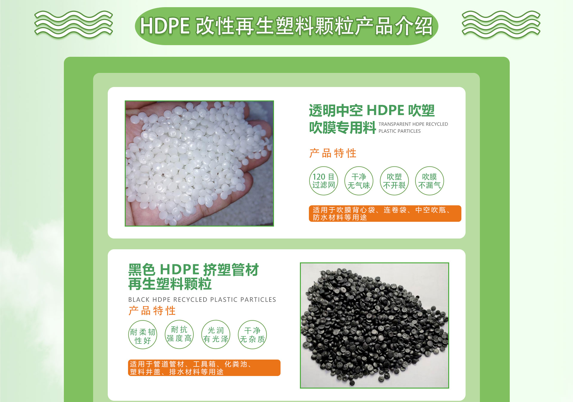 蕪湖寶綠特塑業科技股份有限公司,是一家多年生產加工、回收處理、廢舊塑料改性再生綜合資源利用企業。位于安徽省新蕪經濟開發區,廠區占地10000m2,專注生產改性再生塑料20年,為客戶提供好的產品與解決方案,不斷為客戶創造更大價值。目前擁有多臺75雙螺桿改性再生塑料生產線,預計年產量可達30000噸。主要研發生產聚乙烯PE、HDPE改性再生顆粒,產品齊全,可定制,廣泛應用于吹膜、中空、吹塑、箱包、擠塑、木塑、管道、包裝材料、土工材料、防水材料等多個塑料制品領域。配套完善的檢測儀器可對熔融指數、沖擊、拉伸強度、彎曲強度,灰份等指標檢測,從產品生產進行嚴格把關,確保產品質量,滿足客戶各種需求。我公司將以優良的品質,優惠的價格,滿意的服務來滿足客戶的需求!并將以"質量為先、客戶至上"作為企業發展方針,貫徹實施科學管理。如果您有聚乙烯PE、HDPE改性再生顆粒產品的需求歡迎到我廠參觀合作,我們愿與您共創美好!